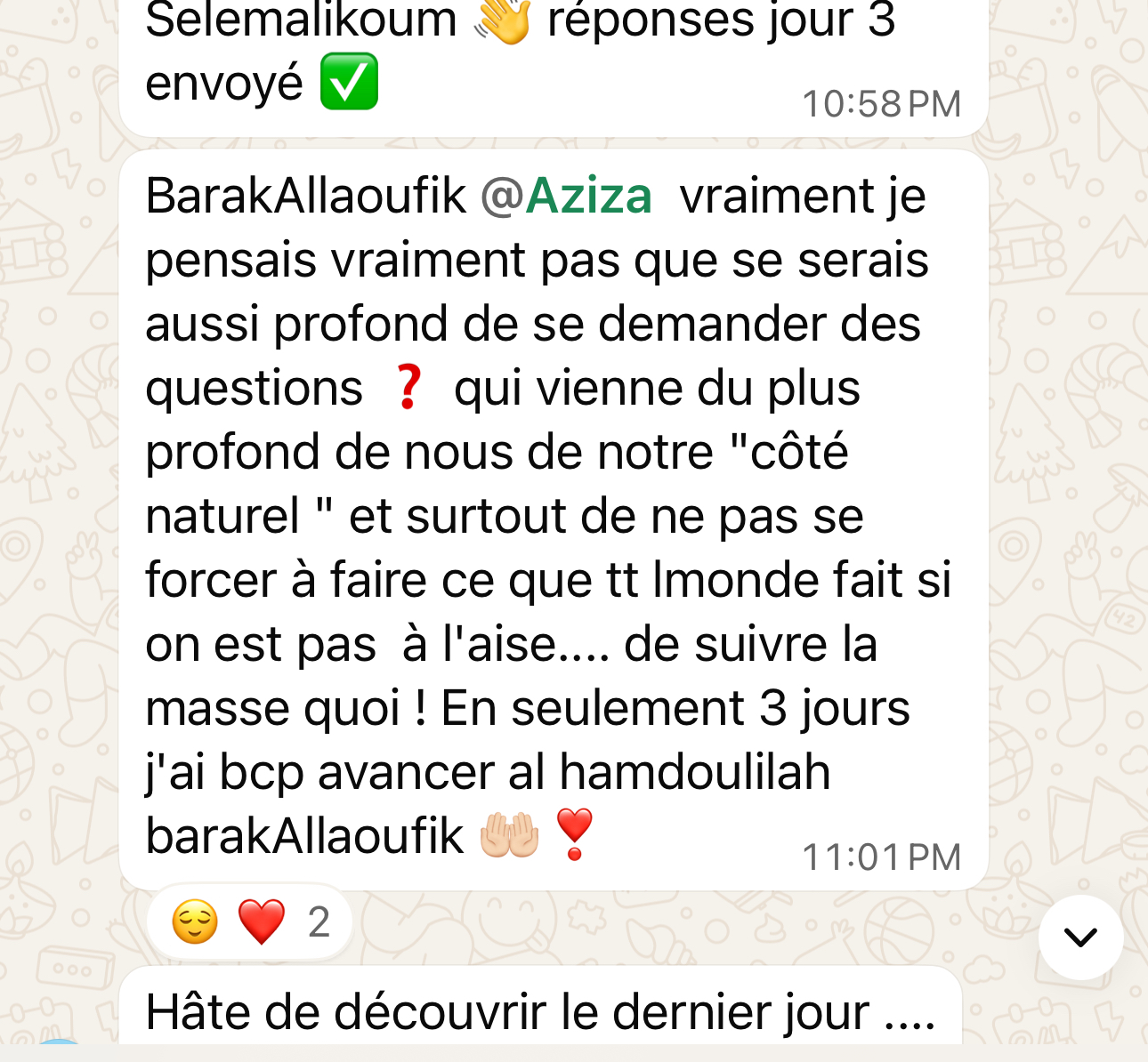 En cochant cette case, j’accepte de recevoir les emails d’Aziza Azri contenant des ressources, conseils, contenus exclusifs et informations liées aux accompagnements proposés. Je comprends que mon adresse email ne sera jamais partagée à des fins commerciales avec des tiers, et que je peux me désinscrire à tout moment via le lien présent en bas de chaque message.
